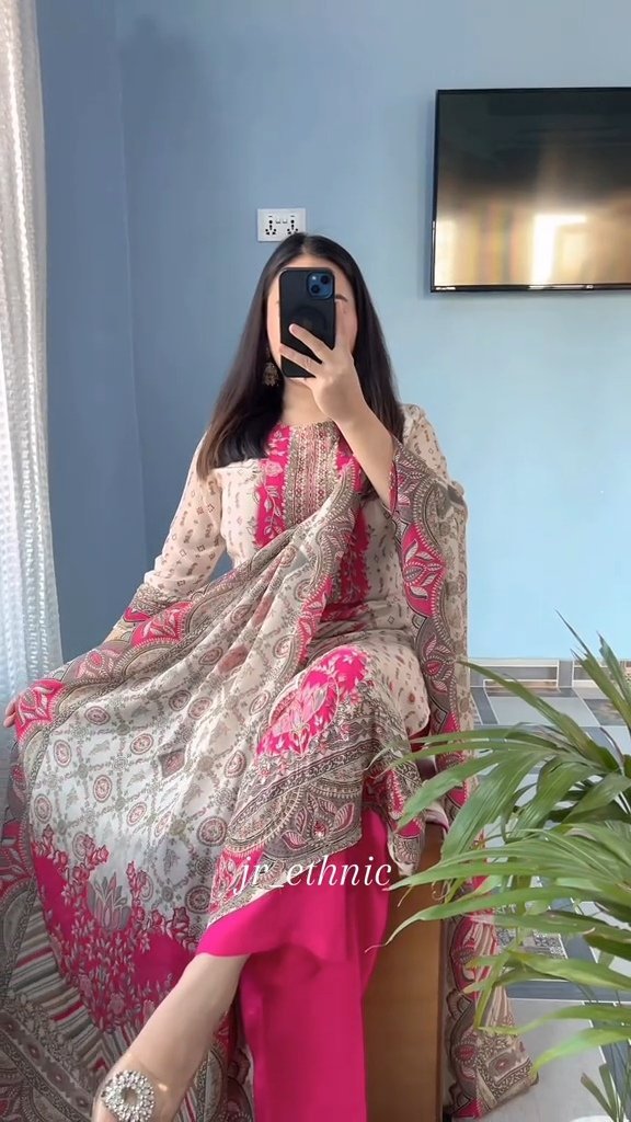 Featuring our stunning Lilac Silks Suit, beautifully decorated with digital prints and hand embroidery. Perfect for your upcoming occasions, itâs easy breezy & comfortable.
